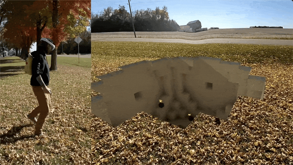 在 AwakenToast 的 这期视频 中,他向我们展示了使用 Quest 3 在户外游玩 Minecraft(实际上这是一位独立游戏开发者 Running Pixel 制作的 BlockVerse)是一种什么样的体验——你可以在现实世界中挖洞,还可以丢一个炸弹进去。