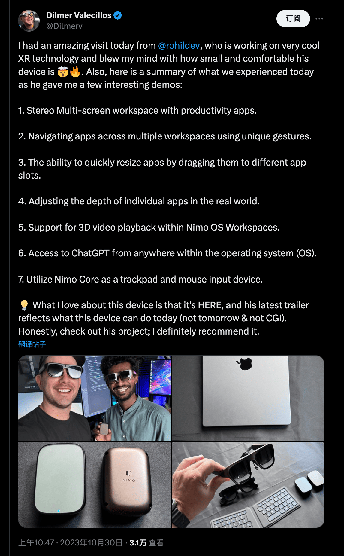 看官方 Twitter 上的 宣传片,感觉 Nimo 1 OS 做的还是有一些“精致”的感觉的。之前我们推荐过很多次的 Dilmer Valecillos 也在这条 推文 和他们进行了互动并给了非常积极的评价。