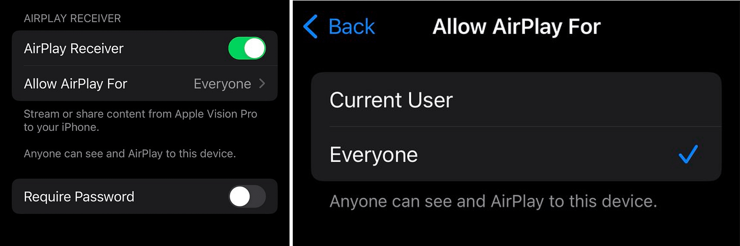 从我们的老朋友 M1 的这条 推文 来看,在新的 iOS 系统上,Apple 增加了对 AirPlay Receiver 的功能,这将会帮助 visionOS 的用户将他们所看到的内容利用 AirPlay 串流到 iPhone 上。