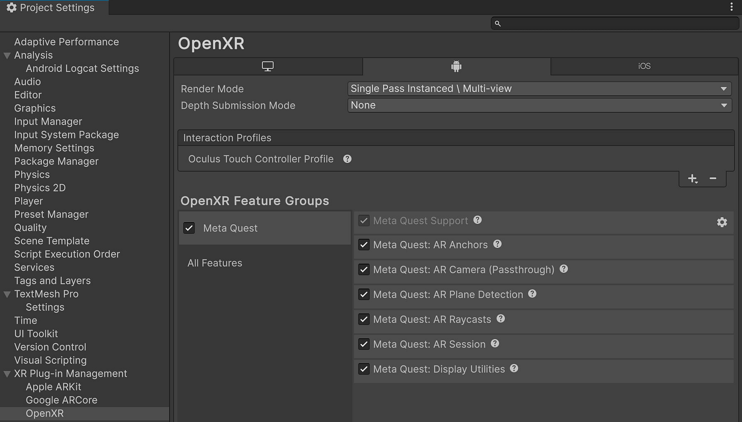 首先,Unity 发布了全新的 OpenXR: Meta 组件,以方便开发者基于 OpenXR 和 ARFoundation 在 Quest 3 上开发 MR 应用(同时,ARFoundation 也会和 VR 开发者并不陌生的 XR Hands 和 XR Interaction Toolkit 协同使用,如果你已经忘了他们是什么关系,你可以去 002 期 复习一下相关的知识)