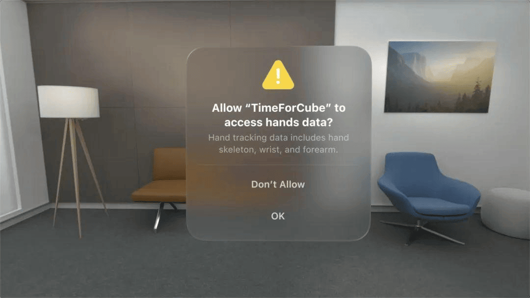 说完了交互,我们再来聊聊 Apple 一直都在强调的用户隐私。visionOS 当然也不例外,它默认只为应用提供仅支持交互的信息。例如: