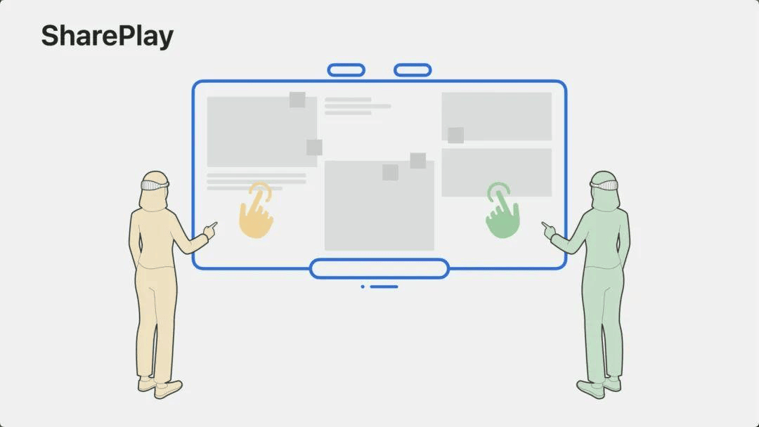 这两部分功能,是通过 SharePlay 和 GroupActivities 这两个框架完成的。当然我们现在的任务并不是去探究它们的细节,只要能明白 Apple 定义的空间交互,包含了单人操作和多人协同两部分就可以了。