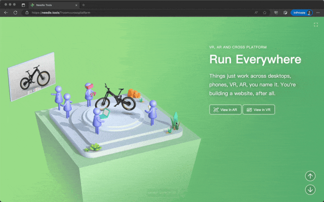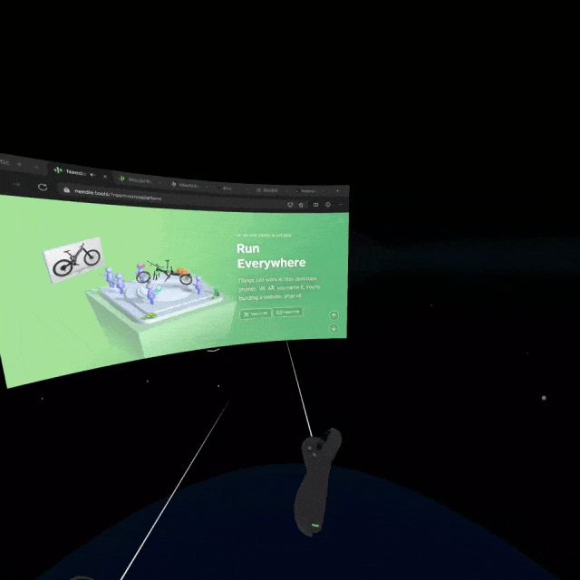 除此之外,Needle 团队还相信 新的 VR 和 AR 设备也将会扩展 Web 的边界,因此在 Needle 中也内置了对 WebXR 的支持,因此同一个项目可以同时在支持 WebXR 的 VR 设备和移动设备上运行: