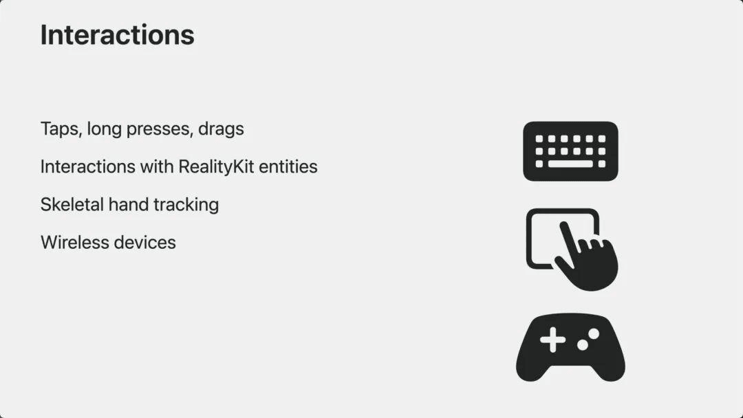 例如:键盘、触控板以及手柄等。这对于我们要戴着 Apple Vision Pro 工作、以及玩一些传统游戏来说,是非常必要的。因此,并不是说 visionOS 的应用,就一定要脱离开传统输入设备。这是我们在开发一个 visionOS 应用时,要特别注意的。