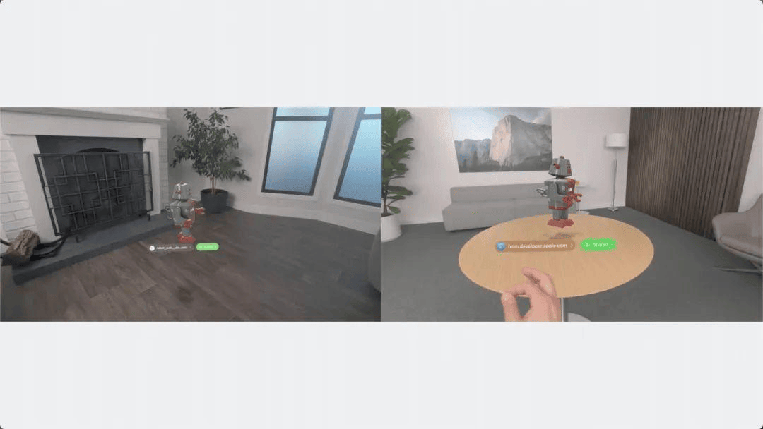 并且,这些手势不仅可以操作 UI,还可以和 RealityKit 对象交互,例如:给 3D 物体添加元素、操作 3D 物体、玩 3D 魔方或者下棋等等。